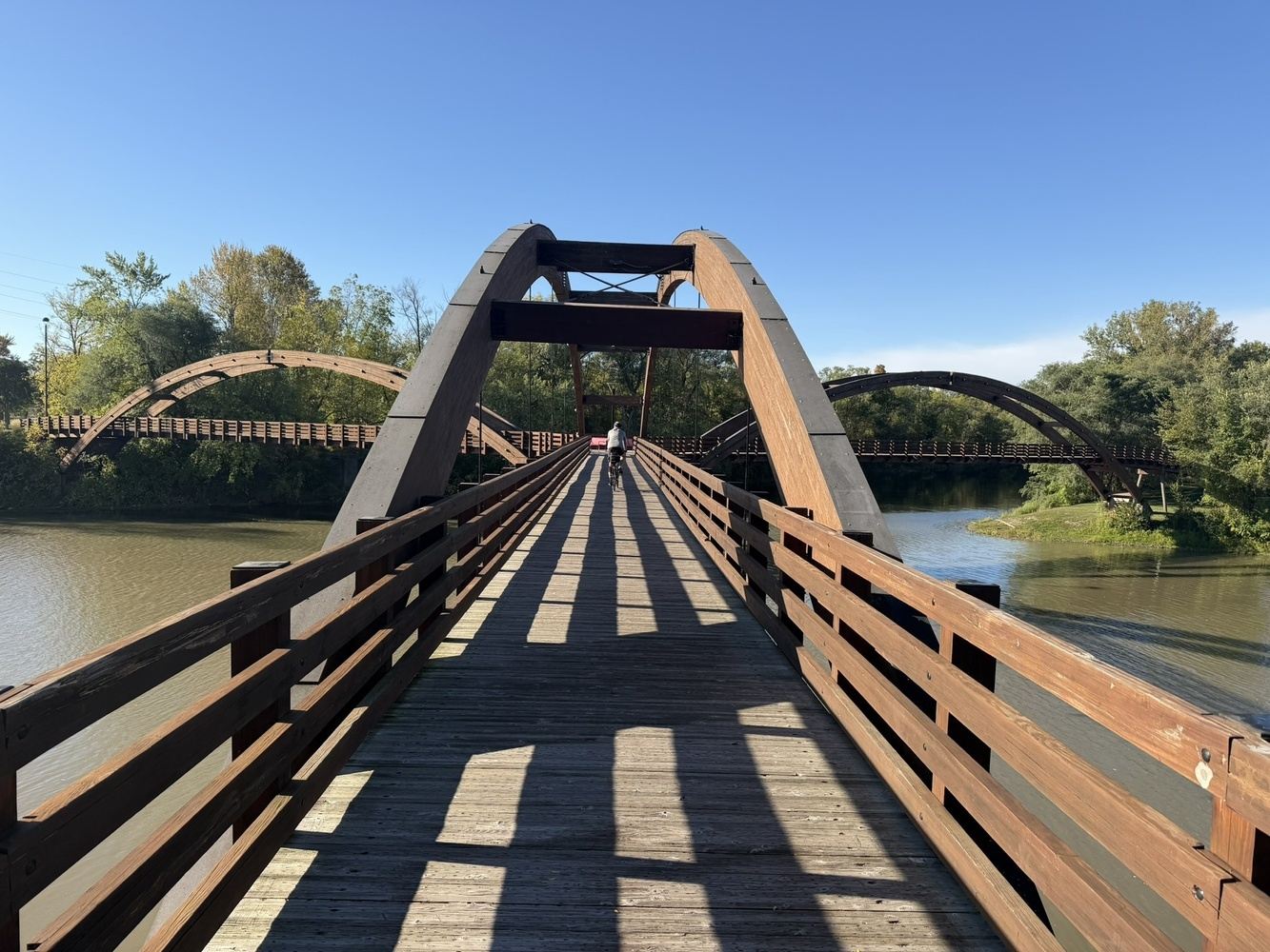 Today we close the tour with a 30-mile run back to Muskegon. We'll use the Musketawa Trail for much of the riding today, and with a little luck the construction currently on the west half of the trail will be complete (otherwise our routing includes about 20 miles on quiet country roads).