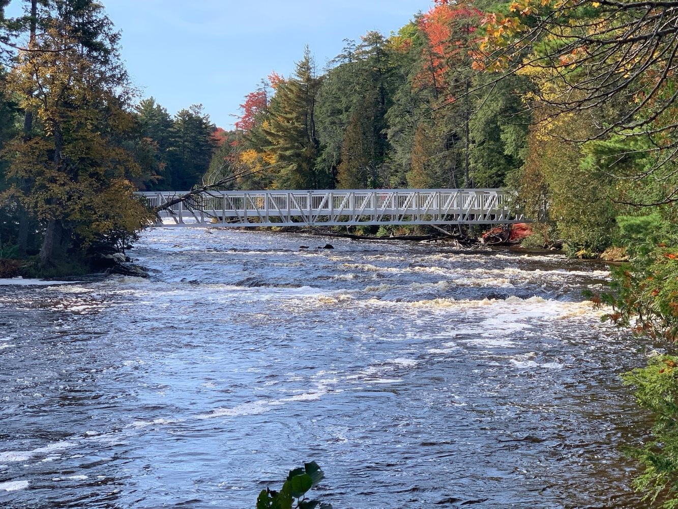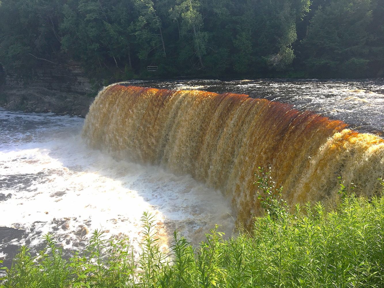 Today is a 60-mile day, with the first sag stop at Tahquamenon Falls, AKA Root Beer Falls. The Tahquamenon River is draining a large swamp, and this waterfall is the second largest waterfall east of the Mississippi, next to Niagara Falls.